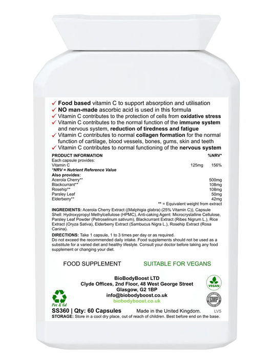 Bio-C - Non-acidic Food Form Vitamin C Benefits - Bio-C is a non-acidic form of vitamin C, making it gentler on the stomach.- Derived from natural sources like Acerola cherry and rosehip, it's designed to be more bioavailable.- The inclusion of blackcurrant, parsley leaf, and elderberry provides a blend of...