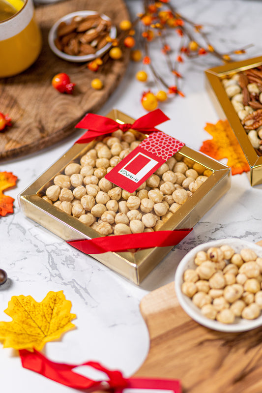 'Luxury food gifting at its finest' Hazelnuts in a Luxury Gift Box offer a wholesome and indulgent experience, packed with 100% premium whole hazelnuts. Beautifully presented in a bow-sealed gift box, this...